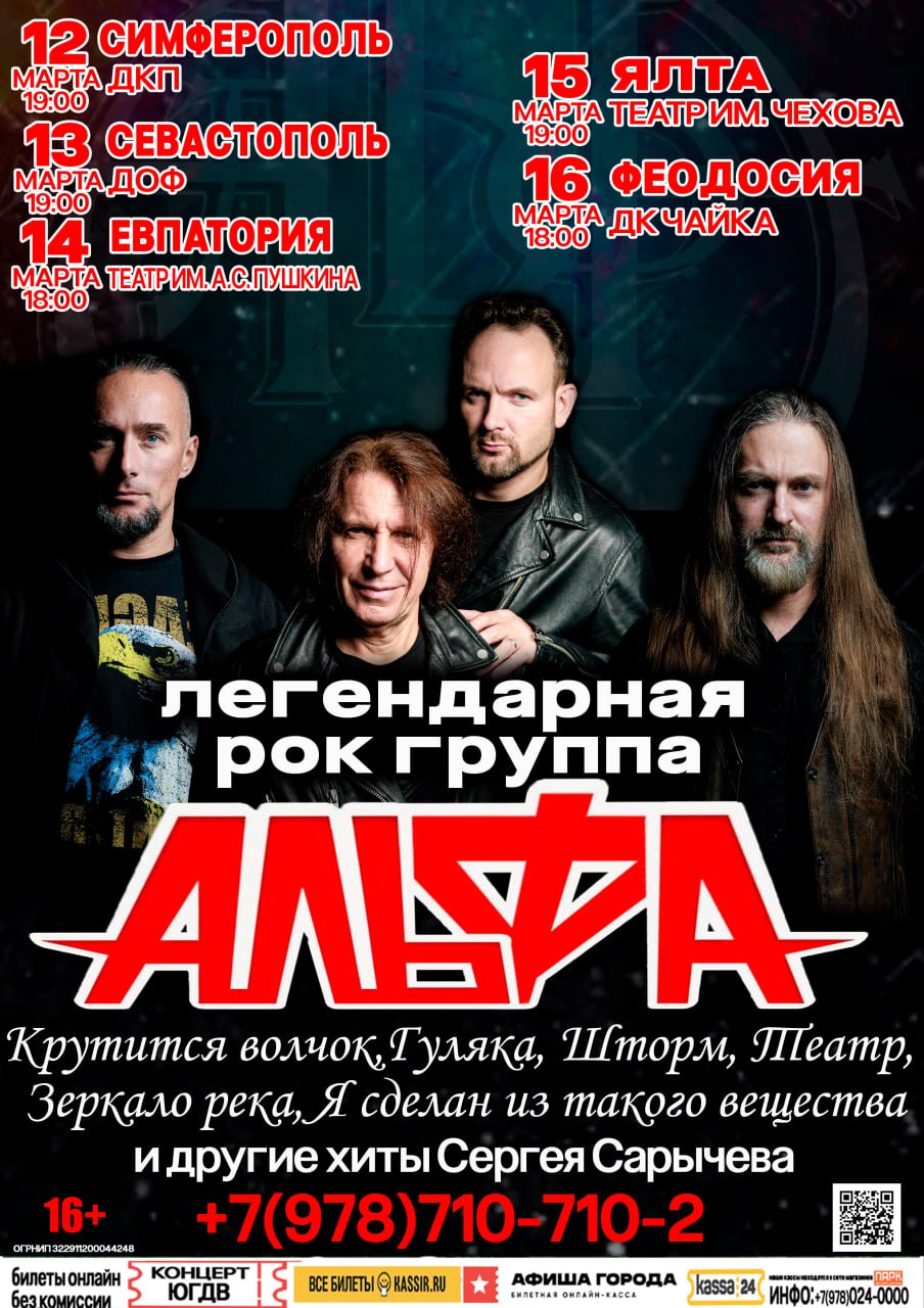 Сенсационное событие для всех поклонников этого культового коллектива и знаменательная веха в истории отечественного рока. У миллионов фанатов вновь появилась возможность услышать любимые песни, ставшие неотъемлемой частью культурного наследия страны. "Альфа" была создана осенью 1982 года уже хорошо известными к тому времени музыкантами - бывшим клавишником "Круиза" Сергееем Сарычевым и барабанщиком "Рубиновой атаки" Сергеем Сафоновым. Благодаря их таланту и упорству, а также удачному сочетанию музыки Сарычева и стихов молодого московского поэта Андрея Лукьянова, коллектив быстро стал одним из самых популярных в стране! Однако, в начале 1990-х "Альфа" была вынуждена прекратить свою деятельность. Это стало тяжелым ударом для всех, кто любил их музыку и ждал новых песен. Но легенды не умирают, они возвращаются! В 2023 году Сергей Сафонов при поддержке Сергея Сарычева набирает новый состав «Альфы». В 2024 году на роль фронтмена Сергей Сарычев предлагает кандидатуру Андрея Южакова, который перезаписывает все вокальные партии и снимается в клипах на песни "Икар", "Листопад (Осенние кустарники)" и "Я сделан из такого вещества". В настоящее время "Альфа" гастролирует с концертной программой, основанной в основном на классическом репертуаре, состоящем из известных, проверенных временем хитов: "Шторм", "Гуляка", "Театр" и многих других, а также работает над новым альбомом, выход которого будет приурочен к 45-летию коллектива.